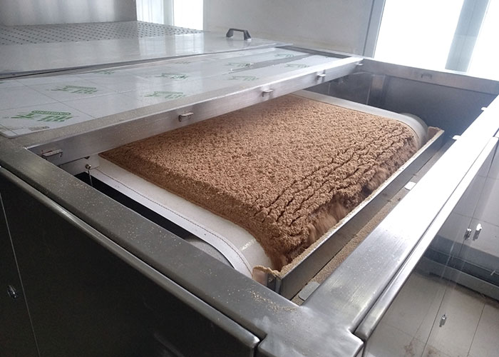 微波干燥是物料中水分大量吸收微波能,使分子間產(chǎn)生急劇的摩擦碰撞,呈現(xiàn)顯著的熱效應(yīng),物料表面和內(nèi)部的溫度同時(shí)迅速升高,蒸發(fā)物料中的水分,從而將微波能轉(zhuǎn)化為熱能進(jìn)行物料干燥。